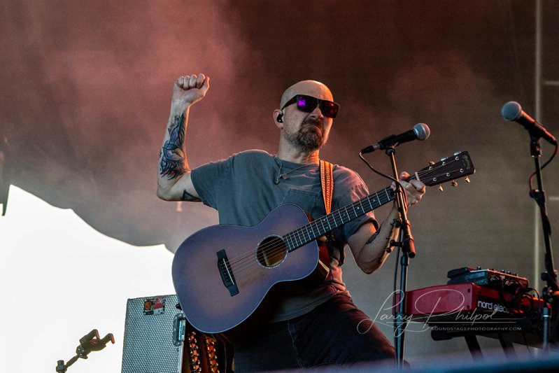 Under the bright, hot Arizona sun at Tempe Beach Park, Dashboard Confessional reminded the crowd why their raw, confessional emo sound remains so powerful in today’s music scene. With Chris Carrabba’s unmistakable voice and acoustic-driven intensity at the heart of it all, the band’s 5:30 p.m. set on the Right Field Stage turned a festival afternoon into a shared emotional release, full of sing-alongs and quiet reflections that felt both timeless and deeply personal to the rather large audience.